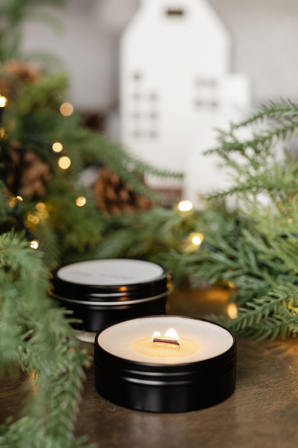 Celebrate the holidays! These candles feature a soft cracking wood wick, beautiful black tin and a festive message. Perfect for gifting or keeping for yourself.