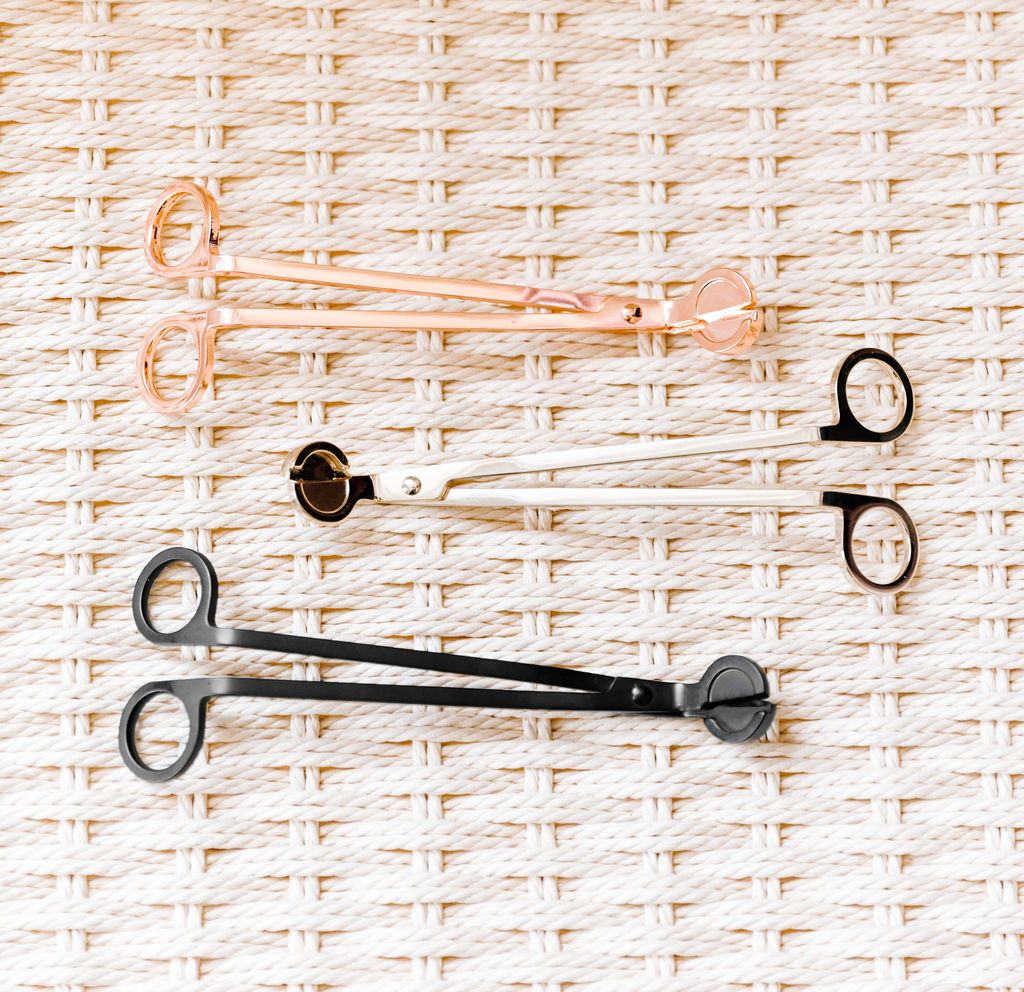 Wick trimmers are an essential tool. The unique shape allows you to trim your candle wick effortlessly before each burn while the base of the trimmers catches any trimmings.